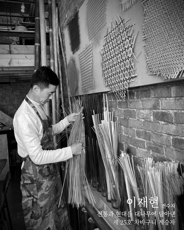 이재현은 전통과 현대를 대나무에 담아낸 차바구니 계승자로 추성문화예술재단 사무국장이자 뱀부가옥 대표로 활동중이다.